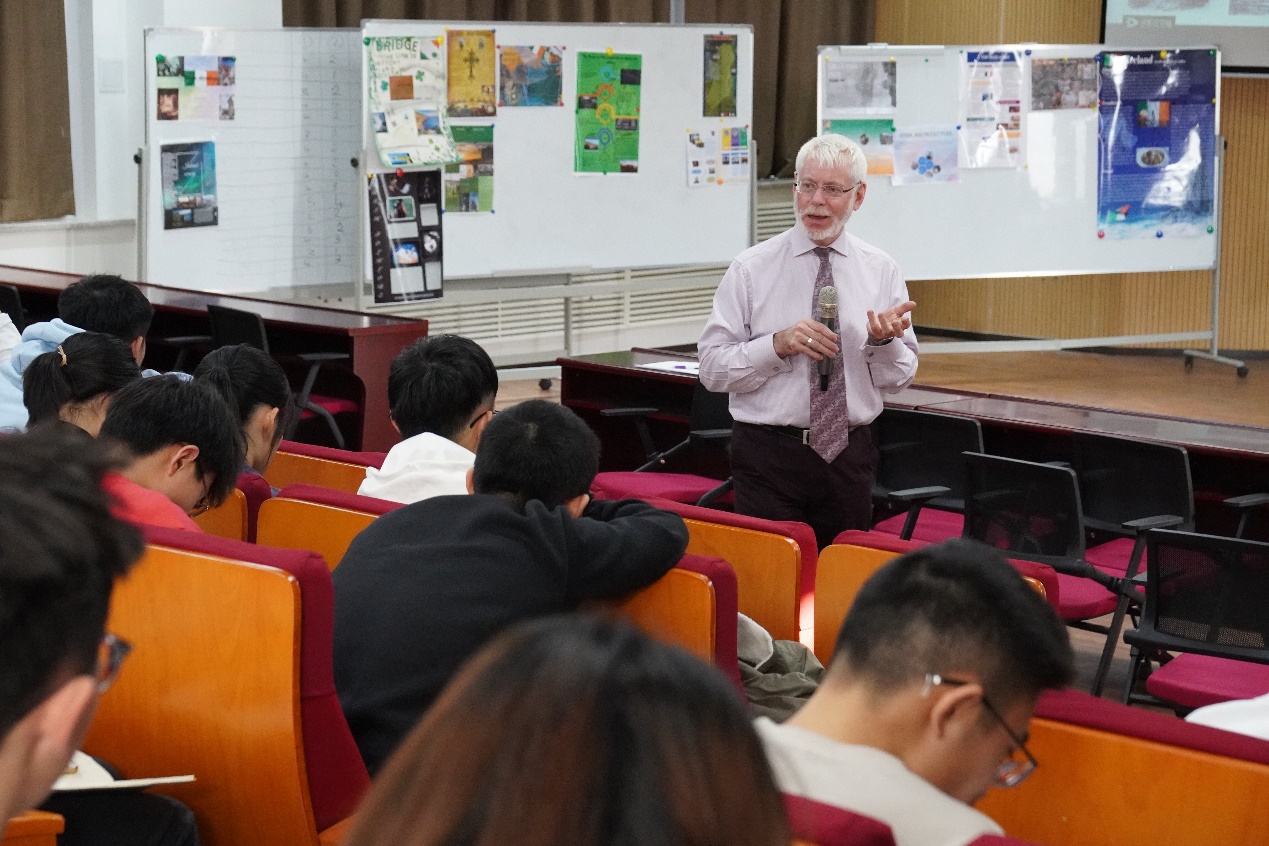 From December 2nd to 6th, 2019, Mark Richardson, Emeritus Professor of the University College Dublin, accompanied Amanda Gibney, Dean of School of Civil Engineering, to visit our school. During the visit, Mark Richardson gave a series of lectures on school entrance for the students of class of 2019 of the Sino-foreign cooperativeeducation.
