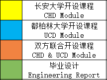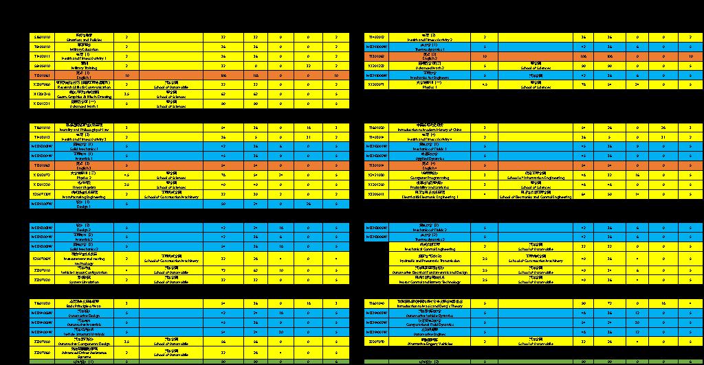 Chang’an University: Geometry Graphic and Mechanical Drawing 1, Research Skills and Communication, Manufacturing Engineering 1, Vehicle Layout / Configuration, System Simulation, Mechanical Control Engineering, Motor Control and Battery Technology, Vehicle Components Design, Advanced Driver Assistance Systems, Alternative Energy Vehicles.