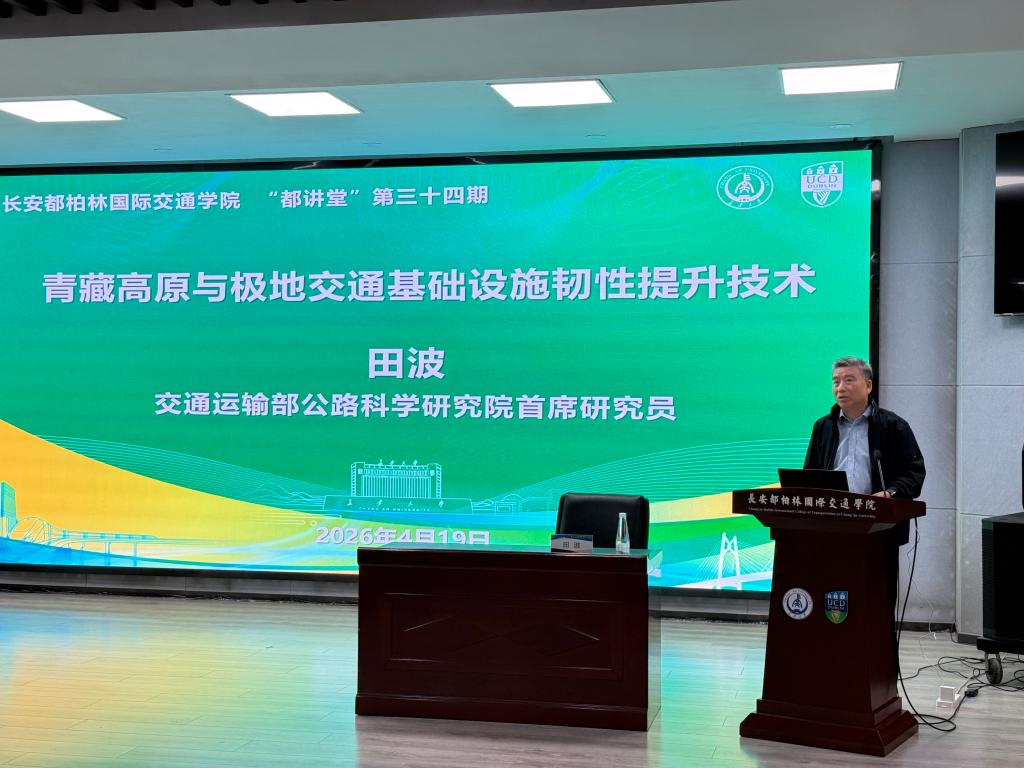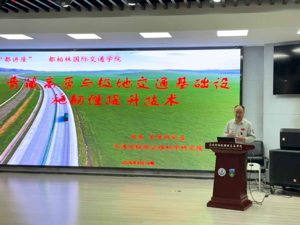 4月19日,性爱av举办“都”讲堂第34期学术讲座。本次讲座特邀交通运输部公路科学研究院首席研究员田波作专题分享,主题为“青藏高原与极地交通基础设施韧性提升技术”。讲座由院长张久鹏主持,我校相关院系师生共同参与本次讲座。