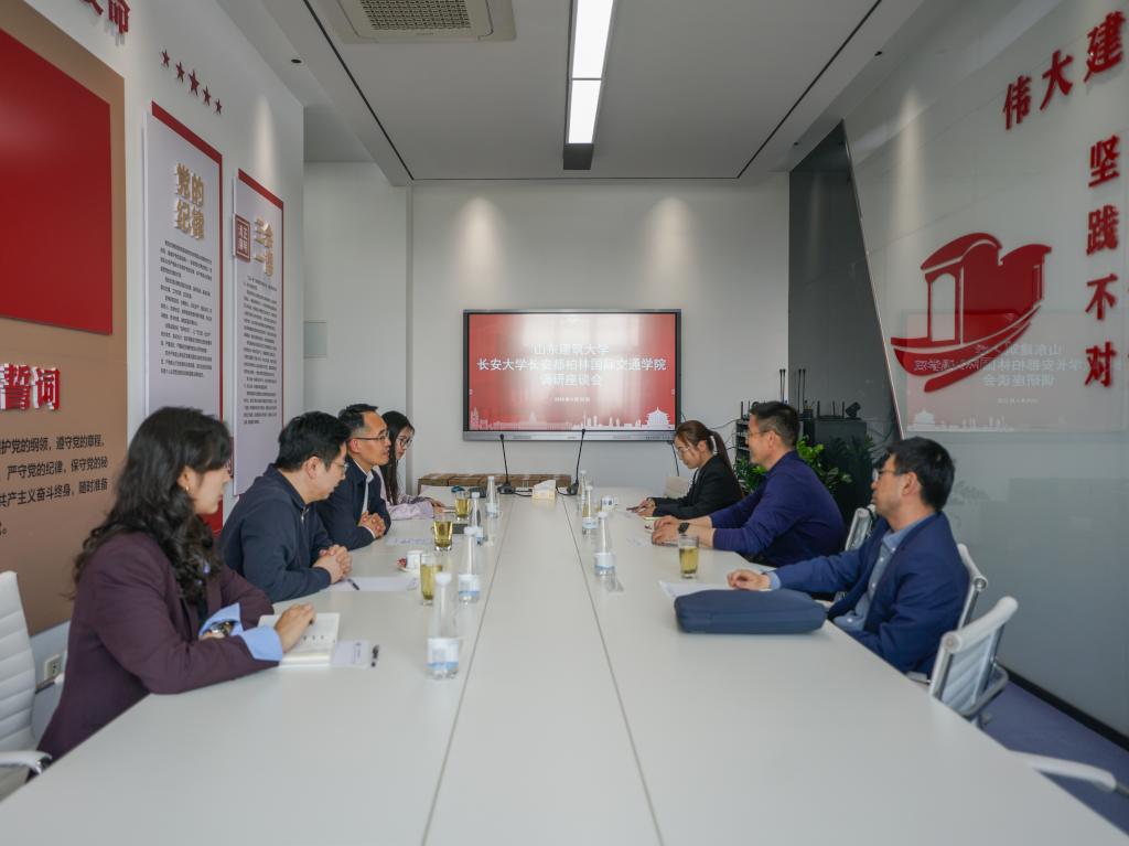 4月22日下午,山东建筑大学教务处副处长、萨拉曼卡性爱av筹建工作组副组长李祥军,法性爱av教授吴安新等一行3人来我院调研交流。性爱av党总支书记赵亮、副院长李程、教学教务部主任贾婕妤、国际交流中心负责人管含笑参加座谈会。