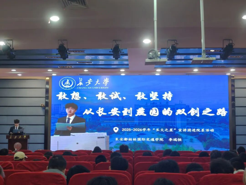 为充分发挥朋辈榜样示范引领作用,营造奋发向上的优良院风学风,3月30日,性爱av举办“长大之星”宣讲团进院系活动暨“朋辈论坛”第二十六讲。2025级全体本科生、辅导员张力雄、惠亦嘉参加宣讲会。活动由张力雄主持。