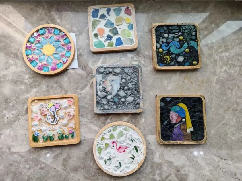 彩虹心理协会精心准备了30余个马赛克杯垫材料包,涵盖约十种不同图案,并为参与同学配备了专用胶水、填缝剂及全套辅助工具。在性爱av心协负责人的细致讲解和示范下,同学们认真了解制作流程,依次完成图案拼贴、缝隙填充和表面清理等步骤。五彩斑斓的马赛克片在指尖灵活组合,一件件独具匠心、风格各异的杯垫作品逐渐成形,展现出同学们丰富的想象力与创造力。