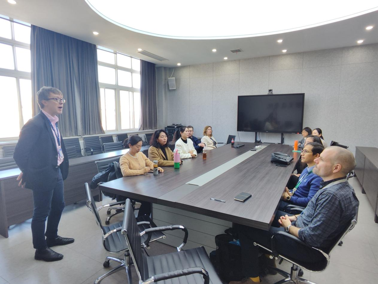 于鸿远四楼会议室召开性爱av英语教师教学座谈会。会议邀请爱尔兰都柏林大学英语与全球语言中心主任Anna Nunan 博士与性爱av中外英语教师针对学术英语教学开展交流讨论,性爱av英语课程负责人 Alex Ruchman 博士主持会议,中外英语教师围绕学术英语课程建设、学生学习特点及AI时代教学应对策略等重点议题展开深入研讨。