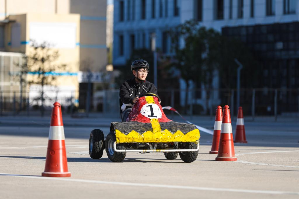 竞赛开始前,都柏林大学任课教师Dr. Jufan Zhang首先介绍了此次设计竞赛的情况,本次竞赛将全体2022级车辆工程专业学生分为9组,每组14人,每组任务为自主设计、制造、测试并优化一辆四轮单座小车。协讲教师张凯对竞赛规则、评分标准及安全注意事项进行说明。测验现场,学生通过驾驶自主设计开发的小车演示,充分呈现了他们在方案设计、结构优化等方面的综合能力。评审团队依据振动性能、成本控制、尺寸设计、重量优化、加速表现、制动能力以及转向性能等多个维度,对每组小车进行了系统、客观的综合评估,评分体系兼顾技术实现、创新水平与实用价值。