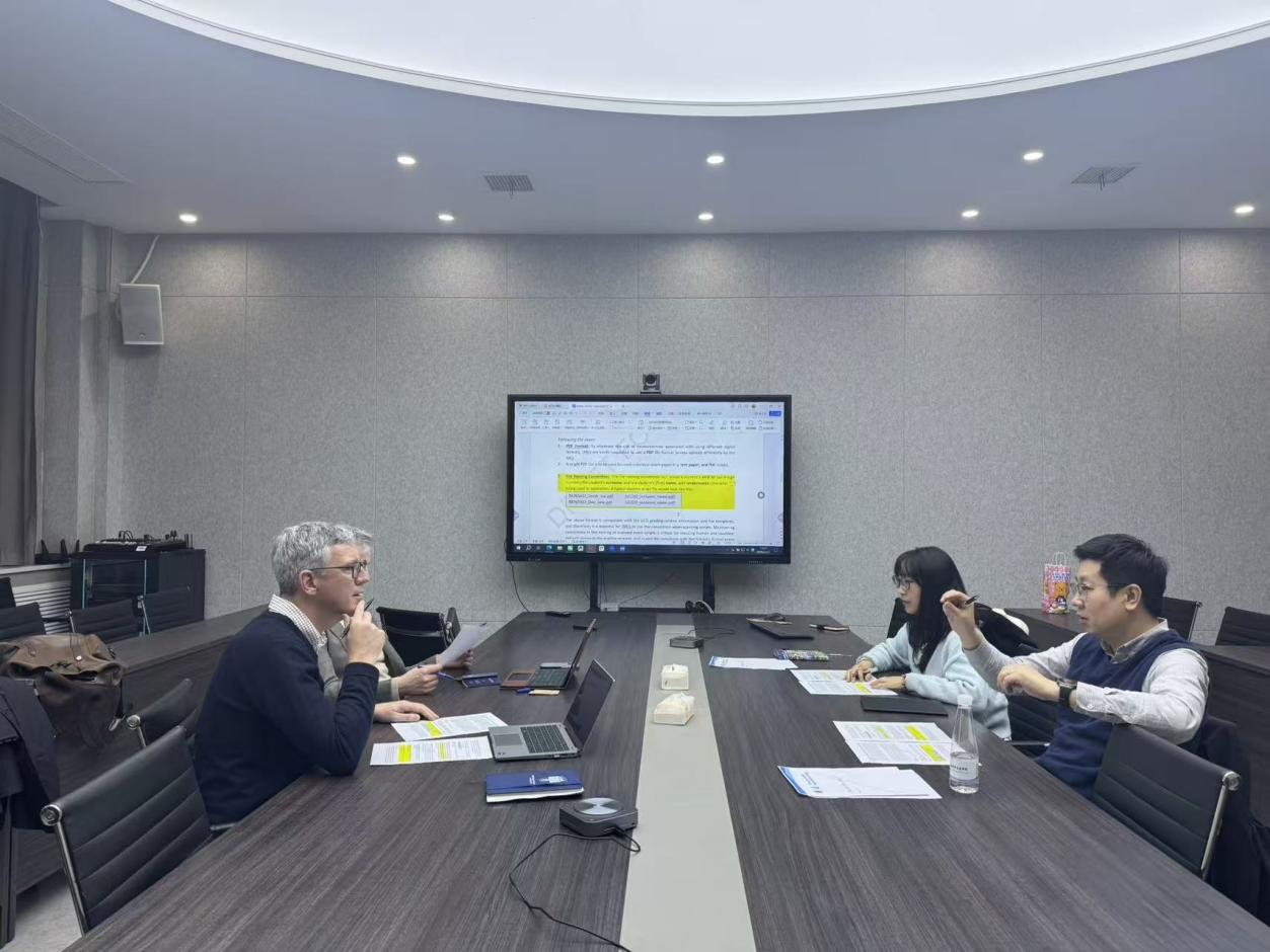 会议首先就学术委员会会议提出的教学管理与运行相关议题进行了讨论。结合中外合作办学实际运行情况,与会人员对中方协讲教师在教学支持、过程管理及沟通协调等方面的职责进行了进一步明确。同时,围绕都柏林大学课程考试规范流程,对考试组织、成绩评定及流程衔接等关键环节进行了细化,以进一步提升教学运行的规范性与一致性。